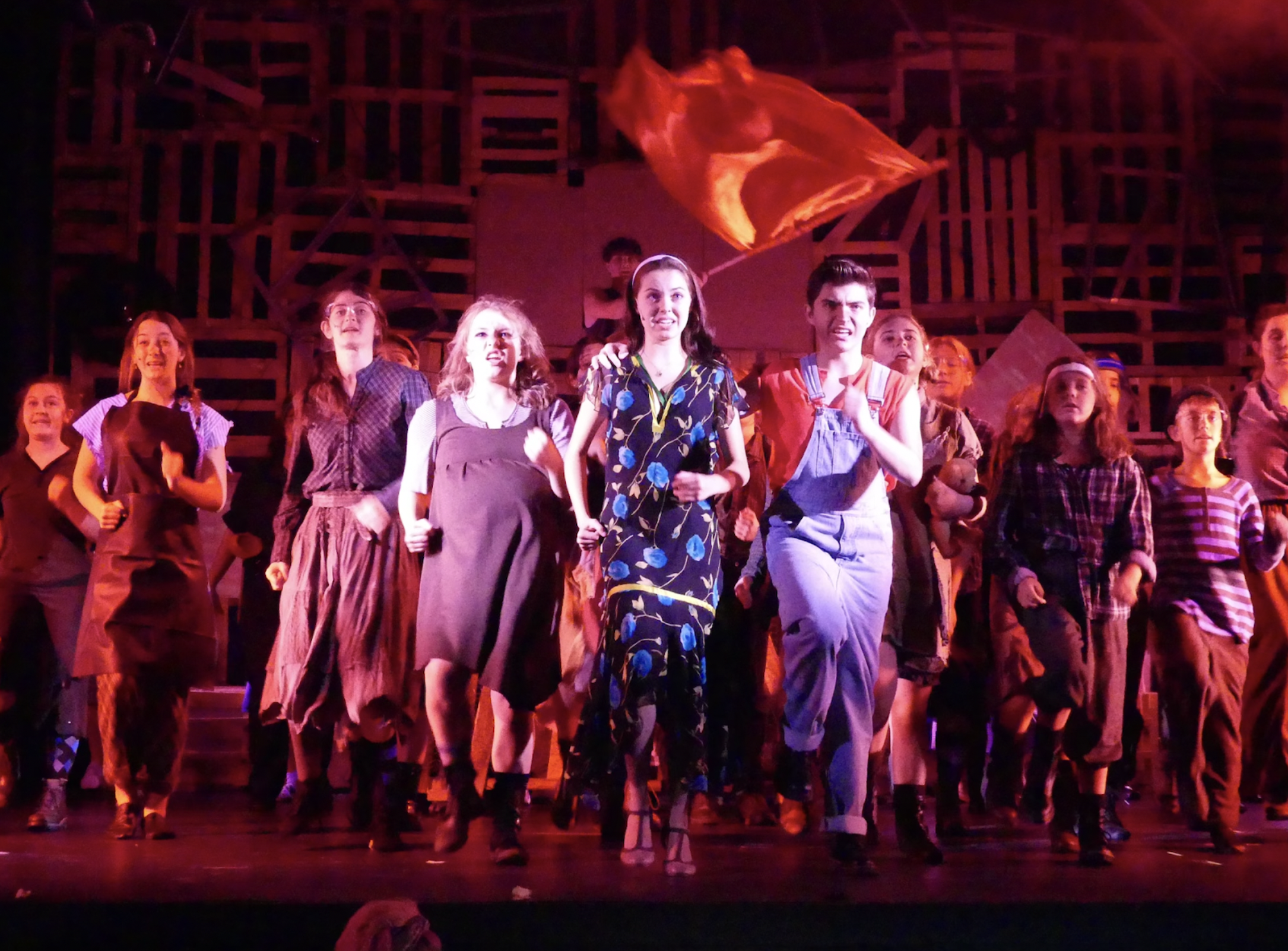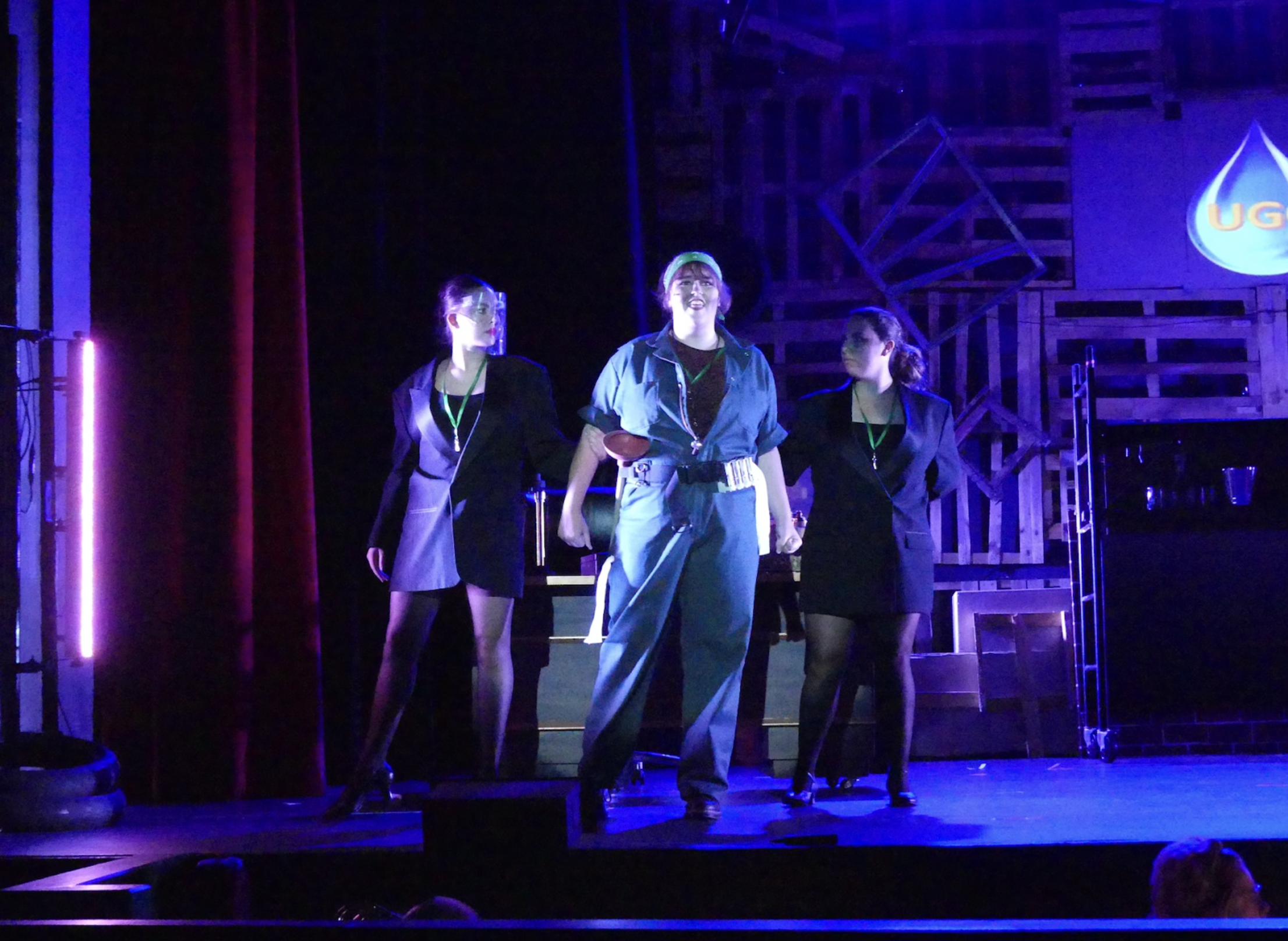 Urinetown the Musical envisions a dystopia where people have to pay to pee. In the show, those who pee without paying are taken to “Urinetown.” In the second act, we discover that Urinetown is made up tool of fear, and anyone who pees without paying is actually killed. Bobby Strong gives his life leading a rebellion against those enforcing these laws. The director wanted a dramatic design that paired with the gruesome plot which he used to contrast the comedic element added by instances of gross overacting and breaking the fourth wall. My design achieved this primarily through the use of heavy sidelight and dramatic angles.